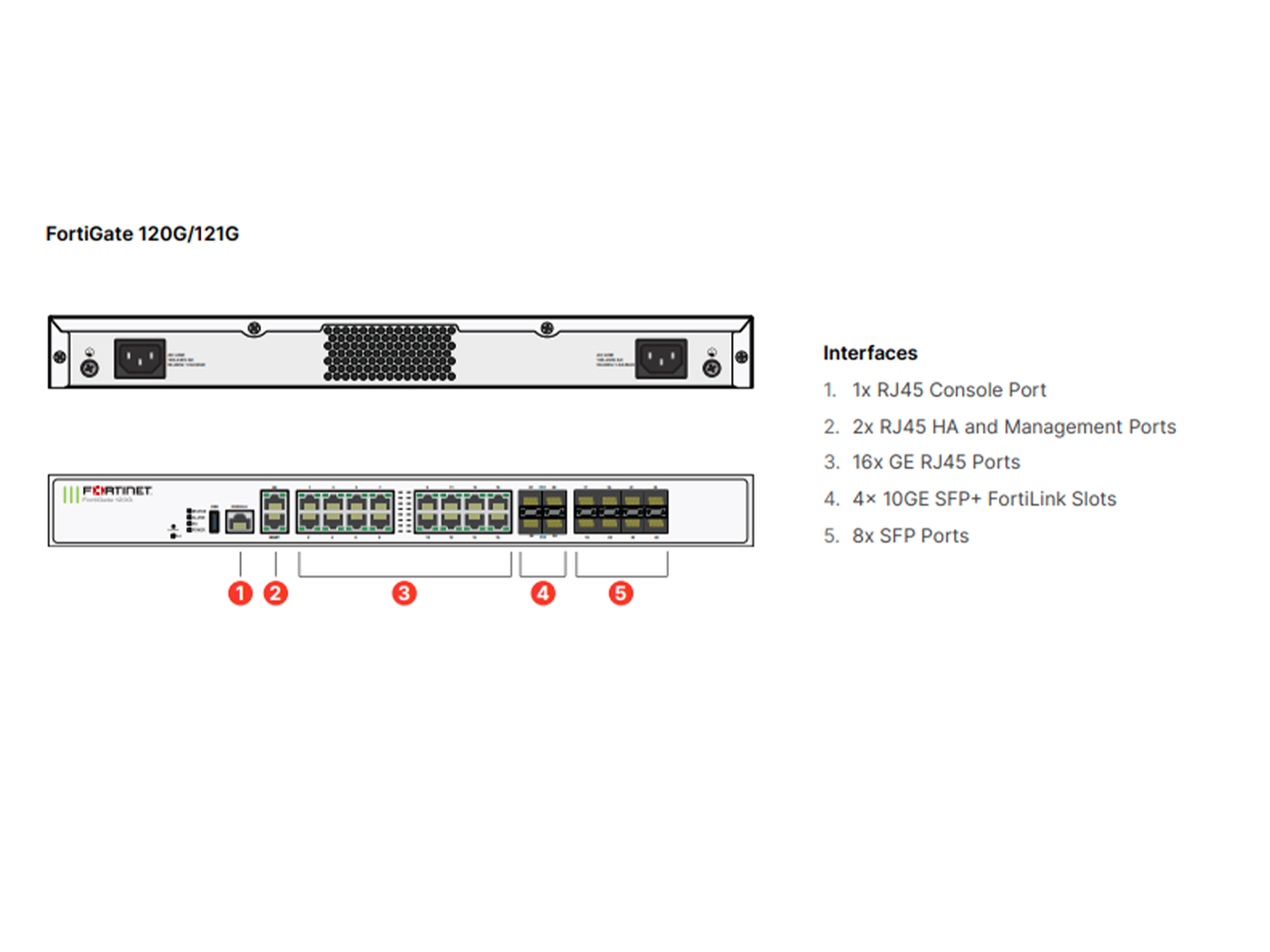 افزونگی منبع تغذیه در عملکرد شبکه‌های حیاتی ضروری است. سری FortiGate 120G دو منبع تغذیه داخلی غیر قابل تعویض در حین کار ارائه می‌دهد.